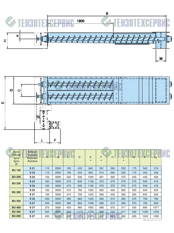 Двухвальные шнековые транспортеры с коническим винтом BU